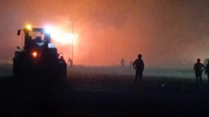 Derik’te enerji şirketine ait depoda çıkan yangında binlerce ton mısır balyası yanıyor.